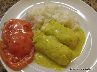 Servi com arroz branco cozido no microondas nesta panela da Tupperware (nesta noite usei muitos utensílios de microondas que poupam trabalho).
