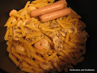 Eu juntei também 3 salsichas de lata para o meu filho, que não gosta de cogumelos nem gambas. :-)